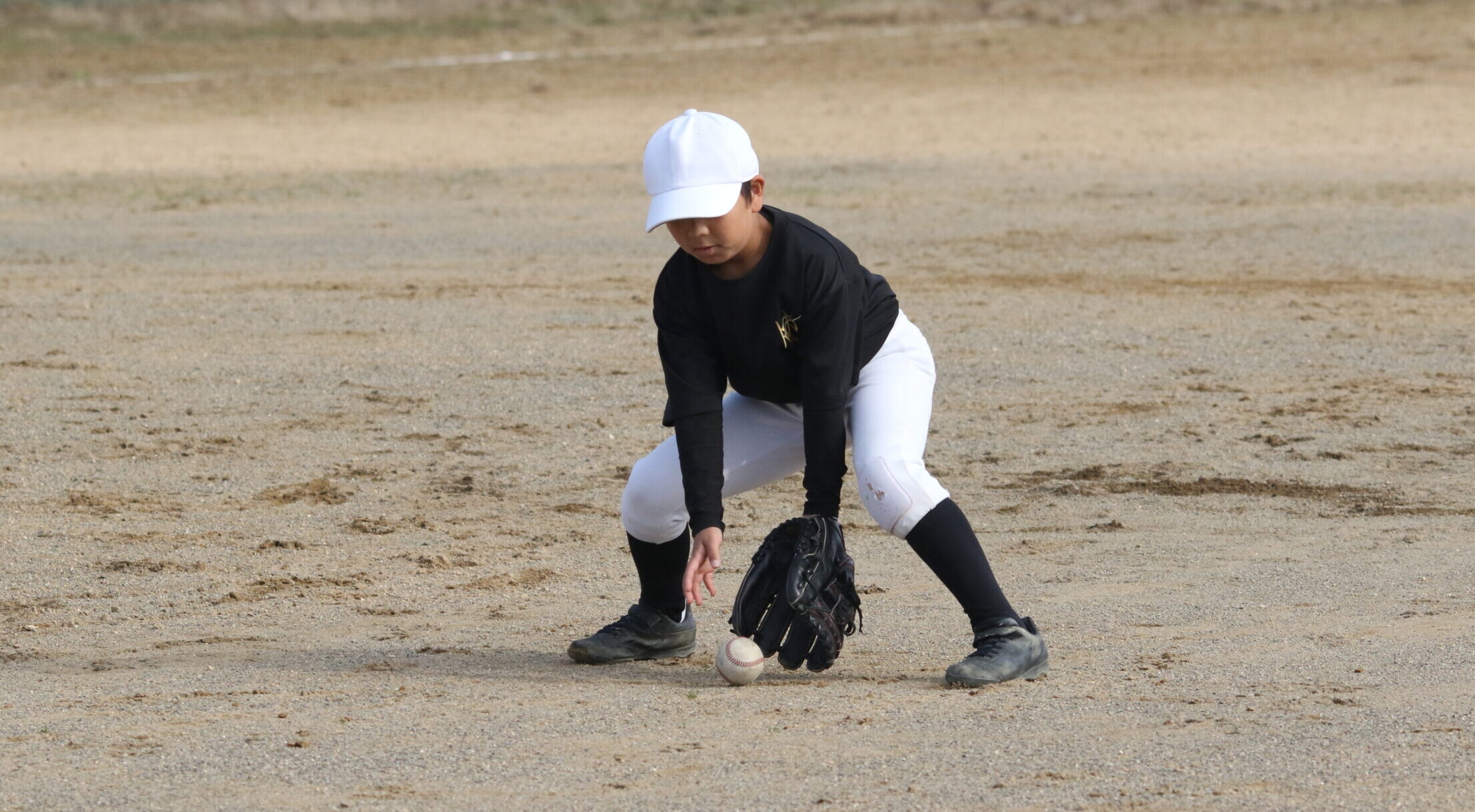 軟式球は軟式球特有の高く弾む打球が多くあります。 そういった打球をアウトにする為には、待って正面で両手で捕っていてはアウトになりません。 逆シングル・ジャンピングスロー・ランニングスロー・ベアーハンドといったメジャークオリティーがより必要になってくると思います。 またそういったプレーを小さいころから練習をすることで、身体感度や身体操作性いわゆる身体能力の向上へと繋がり、スケールの大きい選手へと繋がると考えています。 ミスOK! どんどんチャレンジしてメジャークオリティーを身に着けよう!!